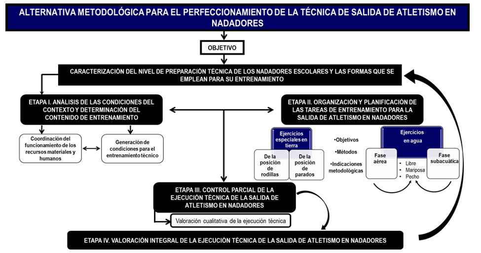 Por la importancia y actualidad del tema se plantea el siguiente objetivo diseñar una alternativa metodológica para el perfeccionamiento de la técnica de salida de atletismo en nadadores escolares de la Eide "Cerro Pelado" de Camagüey.